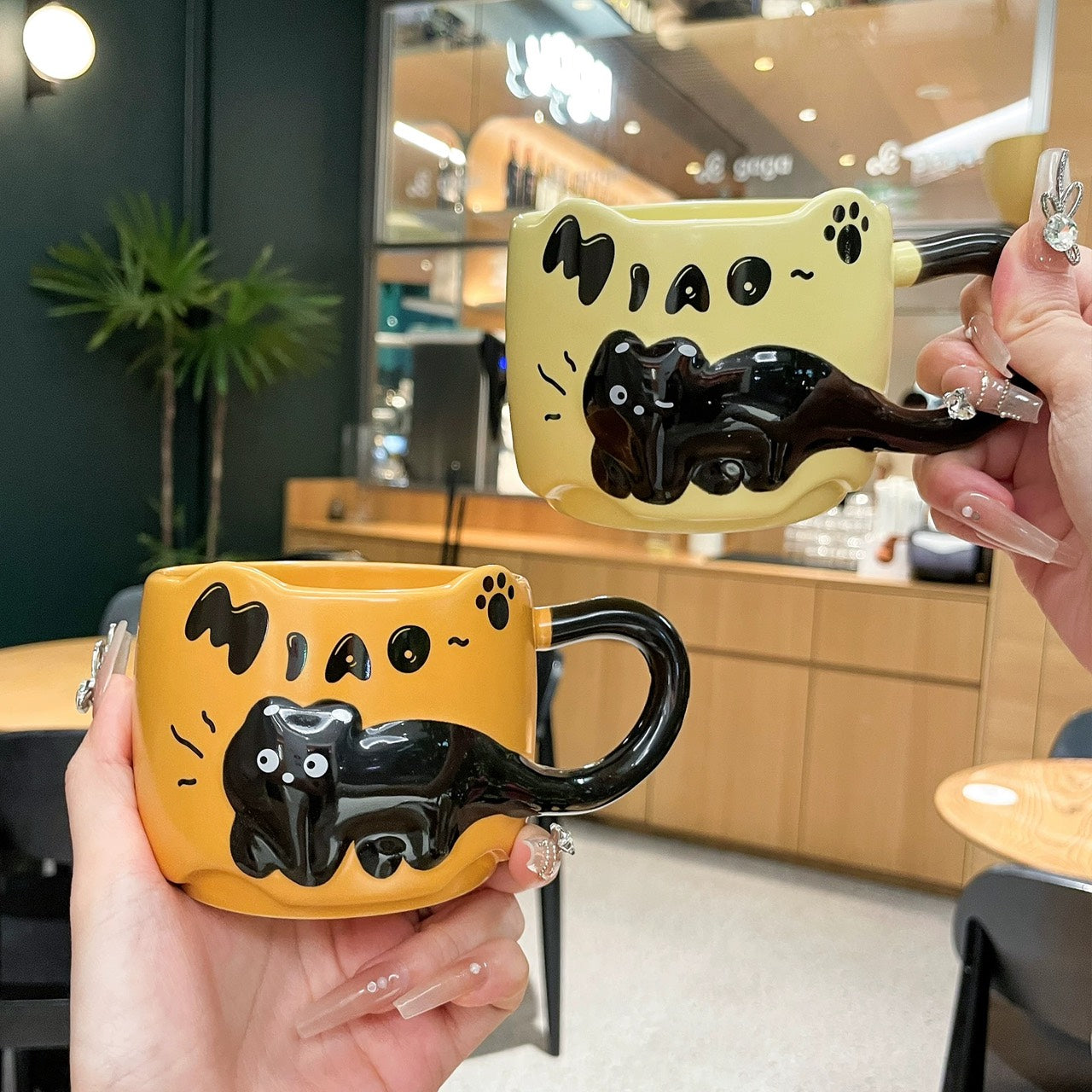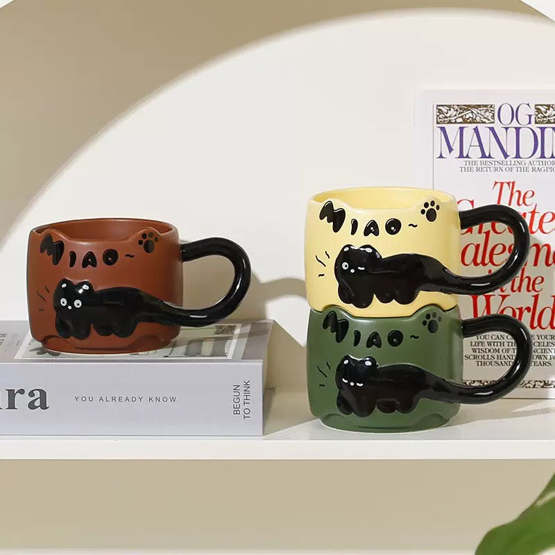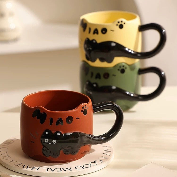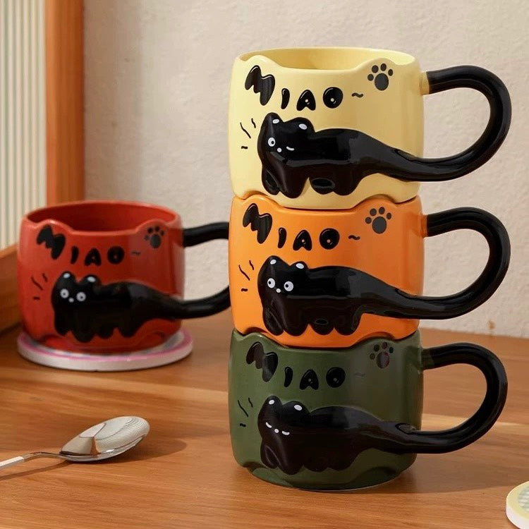 好宅選品 🏠 浮雕貓咪杯 附攪拌棒 陶瓷杯 疊疊水杯 點心杯 早餐杯 馬克杯 生日禮物