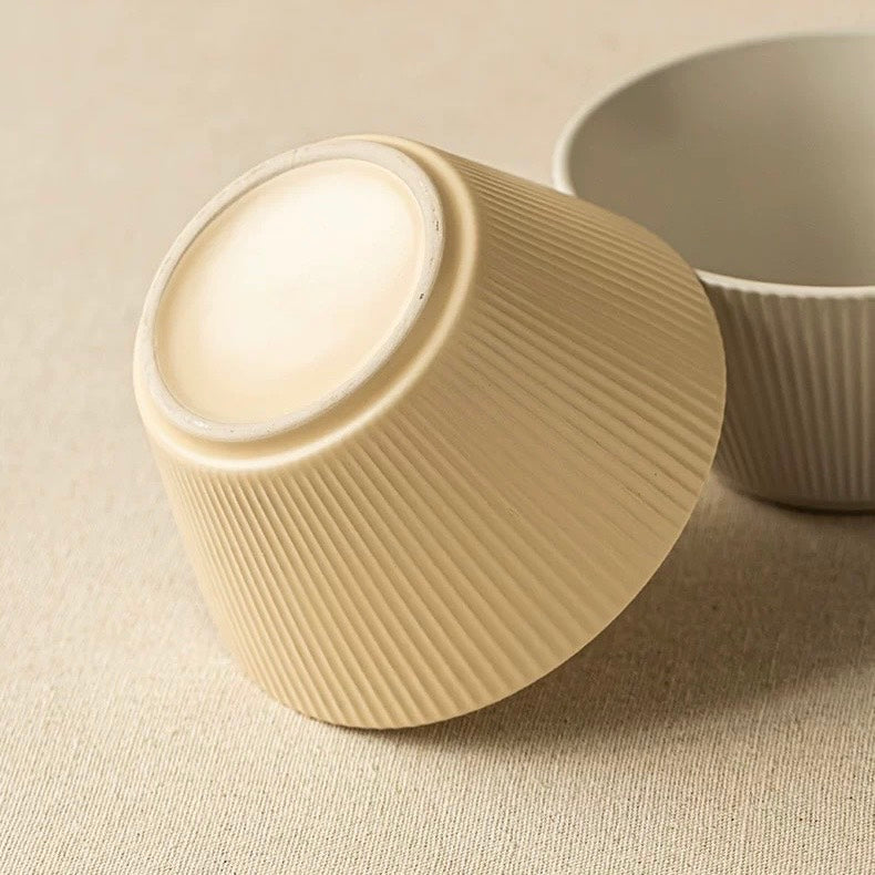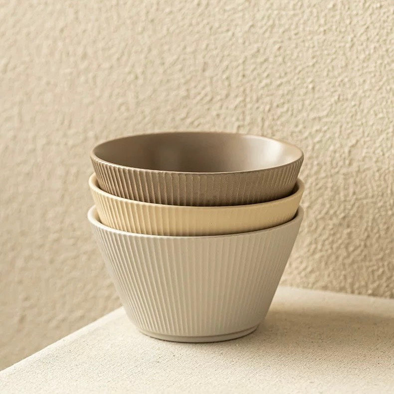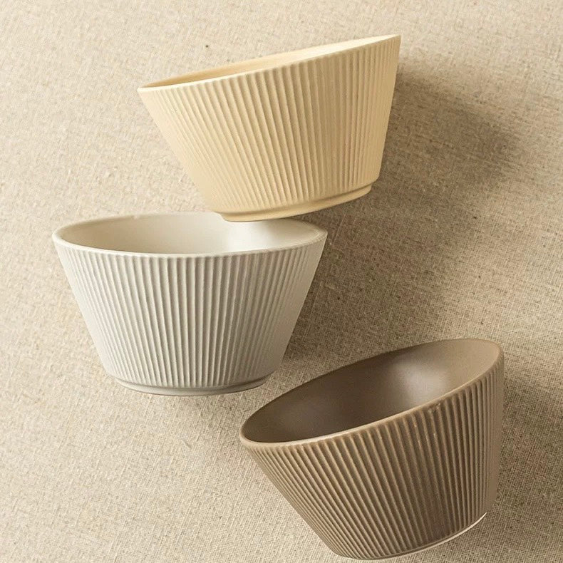 好宅選品 🏠 無印風格 陶瓷斗笠碗 純色條紋 奶油色系 飯碗 碗 陶瓷碗