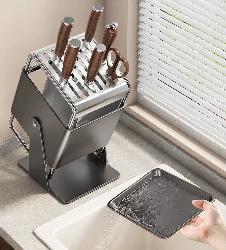 好宅選品 🏠 旋轉刀架 廚具 廚房用品 多功能 刀具 瀝水收納架 不銹鋼一體刀座 置物架