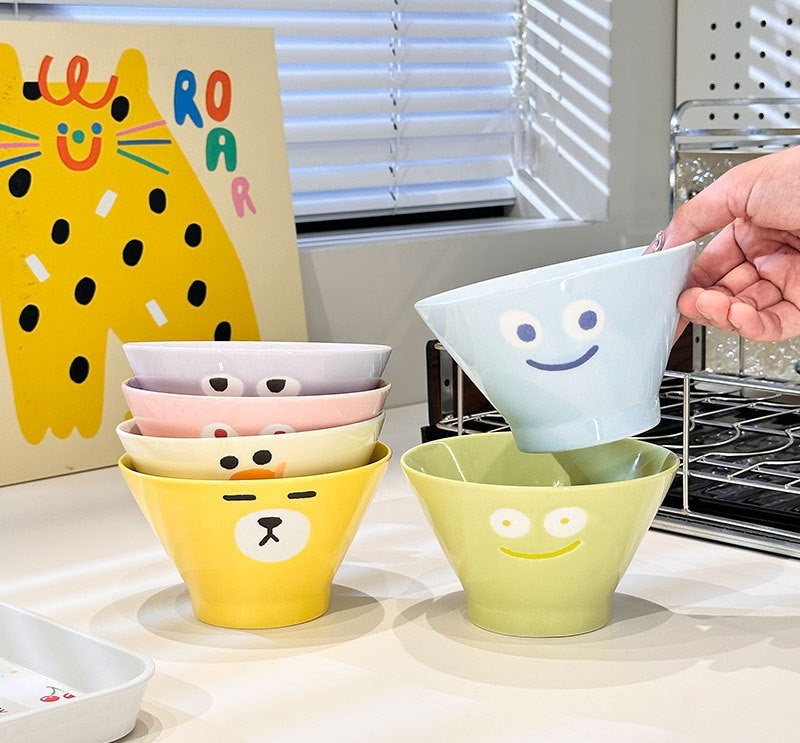 好宅選品 🏠 表情包 陶瓷飯碗 餐具 斗笠碗 防燙 飯碗 沙拉碗 一家人飯碗